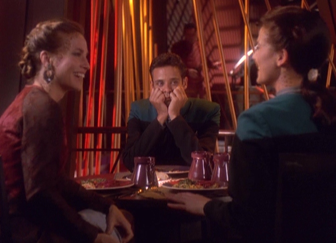 The Tradition in question in the episode is indeed a restriction on sexual relations for joined Trill. Current hosts are forbidden to engage in relations with partners of previous hosts, or—if the partner is also a joined Trill as is the case in this episode—the current host of a previous host’s partner. The stated purpose of this prohibition against Reassociation is to preserve the integrity of the current host, and the integrity of the current host-symbiont relationship. As expected of Hollywood, some voices dismiss the rule as bearing no relation to its intended effect. Perhaps surprisingly to our ears, it is Kira Nerys, the most explicitly religious character in the show, who gives voice to the refrain that people should be free to be with whomever they want. Ezri would later ignore the rule without the same soul-searching experienced by Jadzia, perhaps giving us the Dax symbiont’s—and the show’s creators’—final answer on the question.